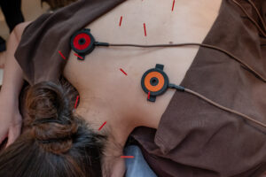 鍼通電療法(パルス療法)による血流促進と鎮痛: 頸部や腕の関連ツボに鍼を刺し、微弱な電流を流す鍼通電療法(パルス療法)を併用することがあります。これにより、神経周辺の血流を強力に改善し、しびれや痛みの感覚閾値を上げ、鎮痛効果を高めます。